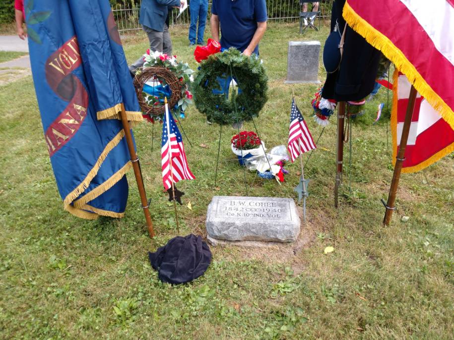 Ceremony September 11, 2022, Hartford City, IN James Augustus Alfrey, Private, Co. I, 132nd Indian Volunteer Infantry 120 Day, 1864 (5/10/1864-9/10/1864) Buried in the IOOF Cemetery, Hartford City, IN.